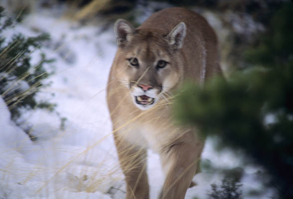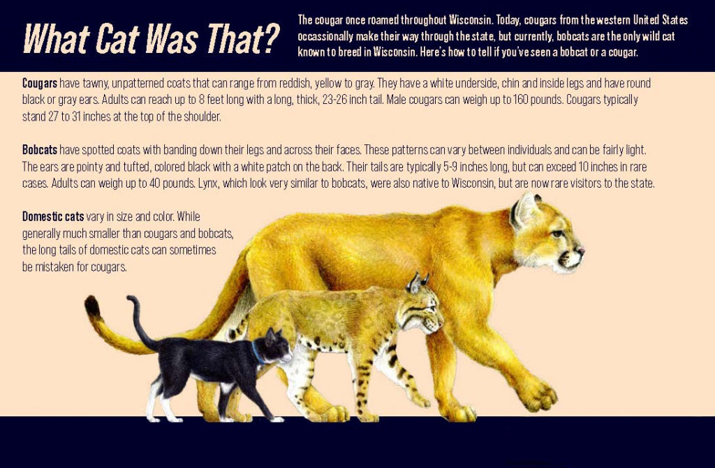 Meet the beautiful Cougar, also known as the mountain lion, puma, panther, ghost cat, and catamount to, the second largest wild cat in North America and the 5th largest cat in the world. (The first is the Jaguar, which has been pushed out of the United States. It is occasionally seen in the Southwest, when rare individuals travel up from Mexico.) Cougars have a very wide range, mostly in western United States, but we have started seeing them now in the Northeast.