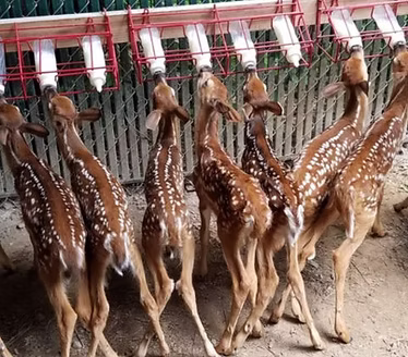 When we rehabilitate deer, as they get older, it’s important to ease off their habituation to humans and “wild them up”. One of the ways we do that, toward the end of bottle feeding, we provide bottles through blinds so they stop associating food with humans.